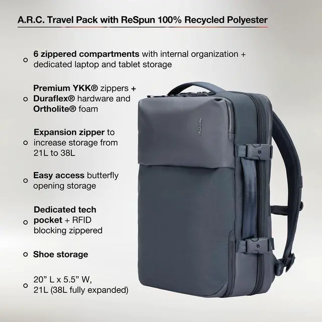 ^^ Built-in smart organization for daily essentials - Includes a RFID-blocking tech pocket, cable loops, and expandable mesh pocketideal travel organization, school supplies, and travel essentials. ^^ Comfortable to carry anywhereairport to classroom - OrthoLite foam shoulder straps and back panel provide breathable comfort, while an ergonomic sternum strap, compression straps, and luggage pass-through support easy mobility. ^^ Backpack with laptop compartment that is weather-resistant, sustainable, and ready for real life - Crafted from ReSpun 100% recycled polyester with a water-repellent coating, plus YKK zippers and Duraflex hardware.