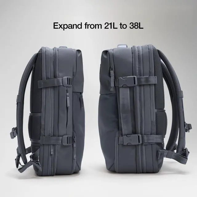 Smart Organization + carry-on backpack approved travel backpack with expandable design - Six zippered compartments, including a butterfly-opening main compartment with two zippered sections, top and middle organization pockets, and a dedicated shoe slip. Expands from 21L to 38L, making it the perfect carry on luggage alternative for short trips, work, or school. ^^ Secure laptop storage for work, school, or gaming - Faux-fur-lined padded laptop sleeve fits up to a 16 gaming laptop, PC, or MacBook, with a separate pocket for your tablet or laptop computerperfect for tech-savvy travelers.