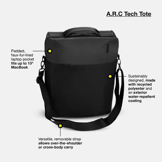 DescriptionDesigned for the on-the-go digital native, the multidimensional Tech Tote carries the items needed to mobilize and quickly access your most streamlined tech. Utilize the shoulder strap for hands-free mobility to quickly access your creative tools. Features a dedicated laptop compartment, a tech-savy RFID feature pocket, and an internal water bottle pocket.