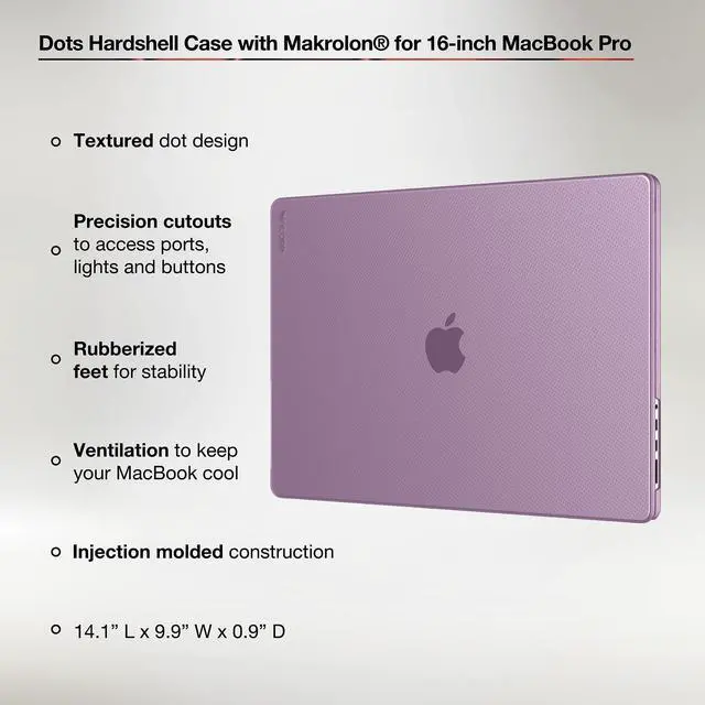 Max Chip (Models: A3186, A3403, A2991, A2780, A2485). ^^ A New Era of Protection - When looking for a laptop case, hard shell options often offer the best protection possible. Here, our Incase Hardshell Macbook Pro Case (for 16 inch models) offers the perfect blend of style and function with a simple black dot pattern and secure, form-fitting protection. Ultimate Performance - This MacBook Pro Case is equipped with rubberized feet for enhanced stability and ventilation to keep your computer cool during long uses. Despite its robust protection, this hard shell case maintains a lightweight design for effortless portability. ^^ Ultimate Performance - This MacBook Pro laptop case is equipped with rubberized feet for enhanced stability and ventilation to keep your computer cool during long uses. Despite its robust protection, this Macbook shell maintains a lightweight design for effortless portability. ^^ Superior Protection - The seamless, tailored fit of this MacBook case is crafted from durable materials to shield your computer from scratches and dents while on the go. Across the case, smart cutouts offer access to ports, lights and buttons keepts your laptop protected without sacrificing use.
