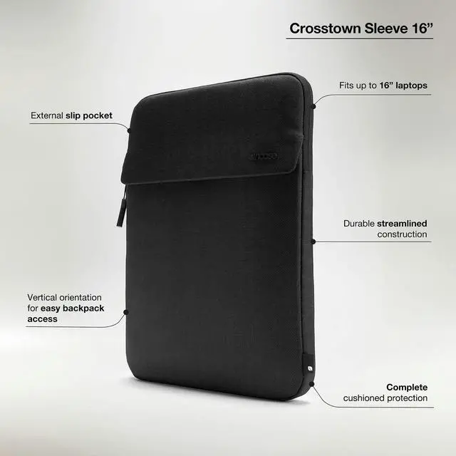 Specifically designed for quick and easy access to your device, perfect for daily us, up to 16 laptops, MacBook Air 15" MacBook Pro 16" ^^ Complete Cushioned Protection The Crosstown Sleeve offers full protection for your MacBook with a completely cushioned construction, ensuring your device is safe from bumps and scratches. ^^ Durable and Streamlined Design Built for overall durability and performance, the sleeve features a streamlined construction that maintains a sleek and mindful silhouette, making it easy to move in and out of your daily carry. ^^ Vertical Orientation for Easy Access Designed with a vertical orientation, the sleeve allows for quick, backpack-friendly access to your device, making it convenient for on-the-go use.