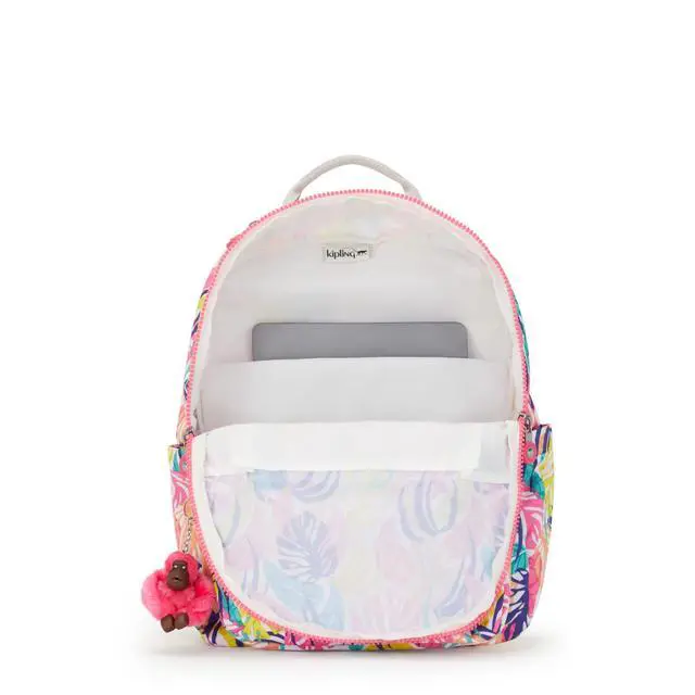 DescriptionKiplings Seoul is a large, lightweight backpack with a useful laptop compartment and a spacious interior. Designed with a handy top handle, adjustable straps and plenty of pockets to keep everything safe, secure and super organized throughout the day. Seoul is ideal whether youre planning a fun-filled day of leisure, exploring the city or relaxing in style on your daily commute.