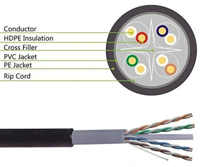 [(Heavy Duty)] Waterproof Outdoor Direct Burial UV Resistant Gold Plated Male to Male RJ45 Connector Patch Cable