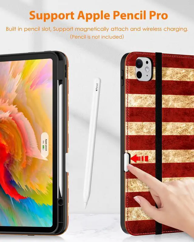 DTTO for iPad Pro 13 inch Case (M4) 2024, Premium Leather Business Folio Stand Cover with Pencil Holder - Auto Wake/Sleep and Multiple Viewing Angles, Built in Hand Strap & Pocket, US Flag