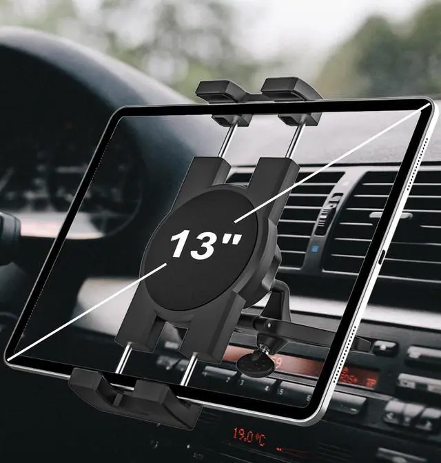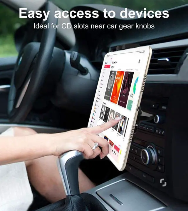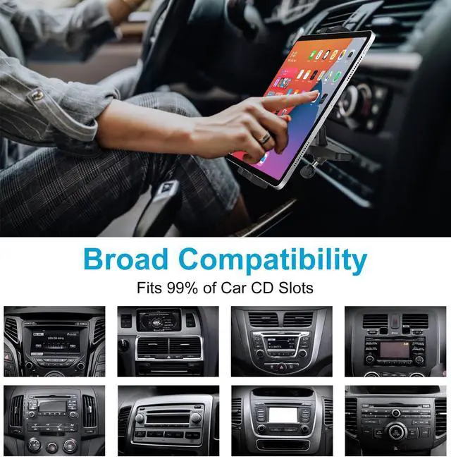 [(Broad Compatibility)] This universal CD slot tablet holder can accommodate all cell phones and tablets ranging from 4 to 13 inches in size. Compatible devices include the new iPad Pro series (9.7, 10.5, 11, 12.9 inches), iPad Ai