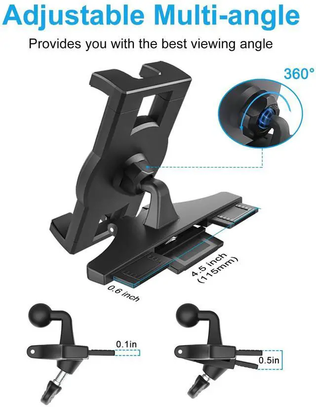 [(360deg Rotation)] Enjoy full 360-degree swivel with a ball joint for your perfect viewing angle. You can hold your mobile phone or tablet vertically, horizontally, or diagonally in the car. Install the mount on the car CD player, placing it conveniently within reach and at eye level for safer positioning without blocking your view. This allows you to easily access all the conveniences of the tablet, such as music, navigation, and radio.