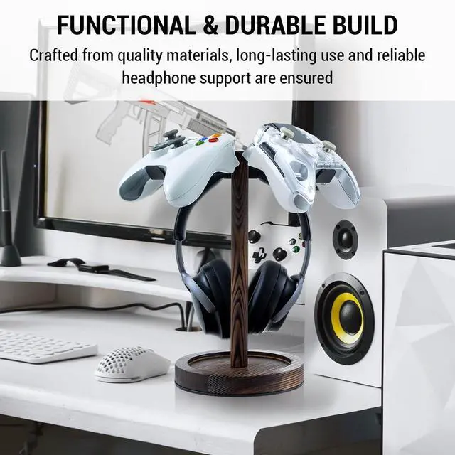 Dual Functionality: Three prongs are designed to hold both headphones and gaming controllerskeeping essential gear organized and within easy reach ^^