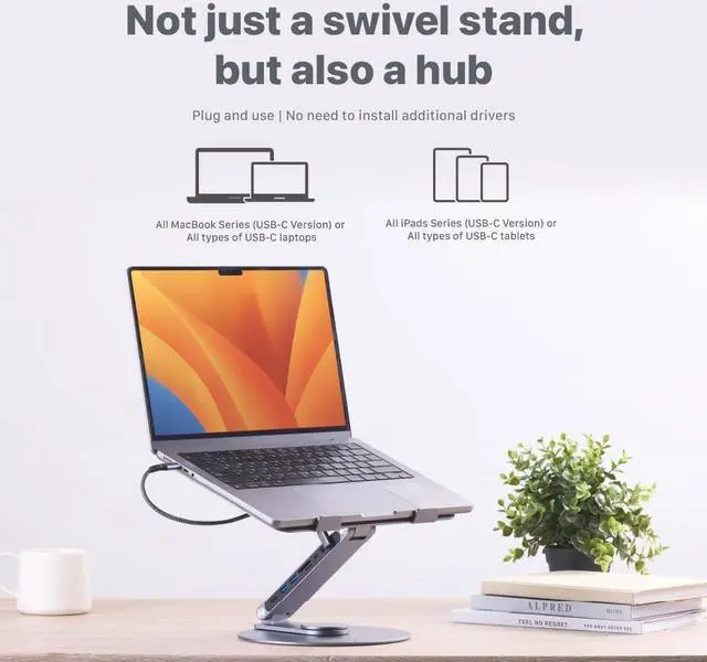 ADAM elements USB-C Stand 360 / Docking Station- CASA HUB 360 USB-C 8-in-1 Aluminum Stand Hub for MacBook, iPad & USB-C Laptop series- USB-C Host, USB-C PD, USB-A x 2, HDMI, Audio, SD 3.0, microSD 3.0