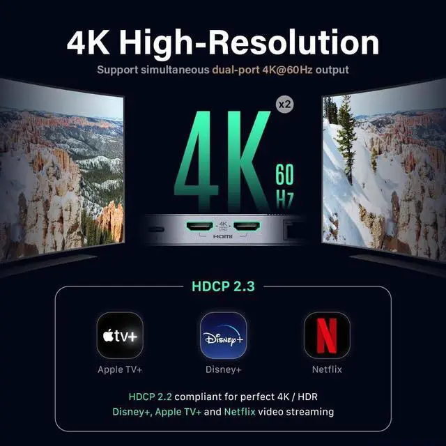 ^^ MacOS Compatibility: DP 1.4 connection and 4K@60Hz HDMI support. Single Stream Transport (SST) mode enables mirrored external display. ^^ Compatible with the M3, M2, or M1 MacBook and iPad series for seamless integration. ^^ It supports fast charging up to 100W with USB Power Delivery 3.0 and minimizes electromagnetic interference, keeping your devices working smoothly. ^^ Exclusive hub base design makes better use of your desktop. Also, it offers a range of connection ports for multiple connectivity needs.