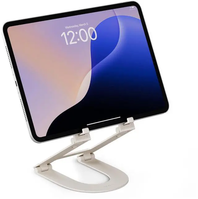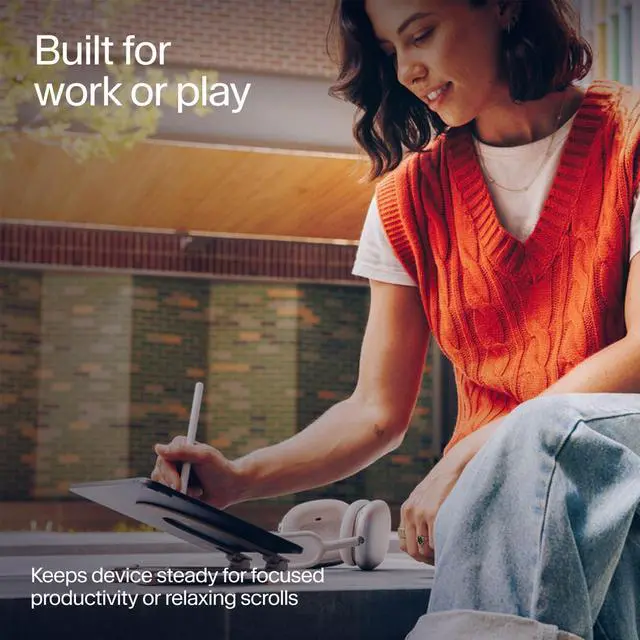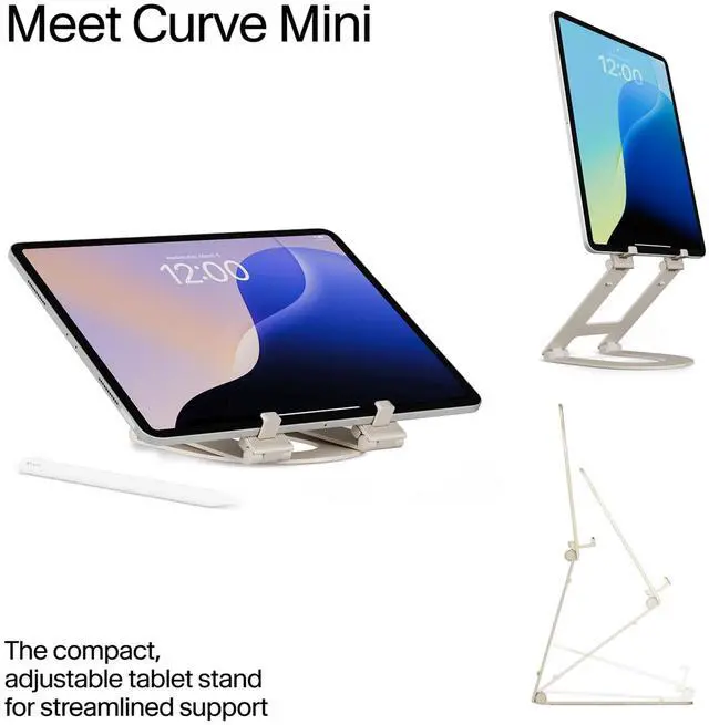 Curve Mini is designed with adjustability in mind. Meet this lightweight, fold-flat tablet stand that is designed to go anywhere you do. It raises your tablet up to 6 inches (137mm) for an ergonomic, hands-free experienceperfect for working, drawing, streaming, and more. Smooth, adjustable hinges and built-in support feet hold your preferred angle, while a weighted base and non-slip silicone pads keep things steady. When its time to move, Curve Mini folds up easily and stores in a protective travel sleeve, making it easy to pack, carry, and protect your gear on the go