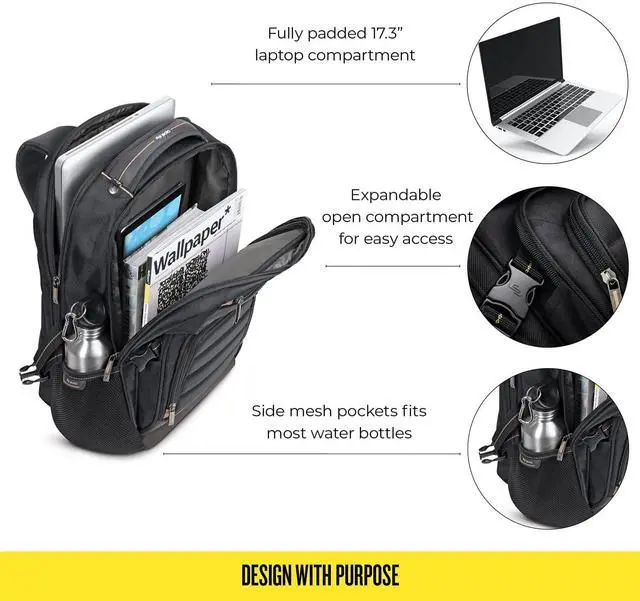 Fully padded laptop compartment fits most MacBooks and laptops up to 17.3 inches
