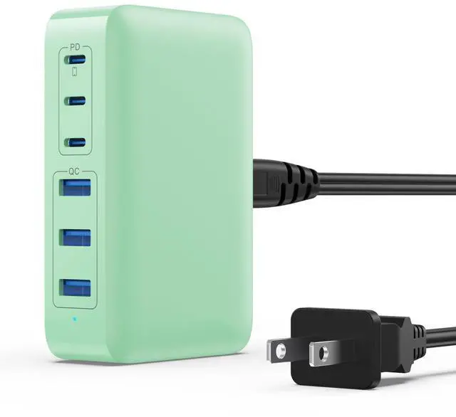 GKUTW USB C Charger Block, GaN III 8-Port USB C Fast Charging Station PPS PD 65W Laptop Charger Adapter Compatible with MacBook Pro/Air, DELL, HP Surface, iPhone 15/Pro/14/13, Galaxy S23, Light Green
