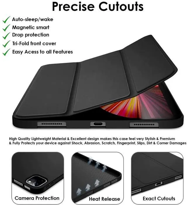 Exclusively Designed for all iPad PRO 11 Inch 4th Gen 2022 (A2759, A2435, A2761, A2762) / 3rd Gen 2021 (A2377, A2459, A2301, A2460) / 2nd Gen 2020 (A2228, A2068, A2230, A2231) Models This Case allows Full Access to all Features & Controls (Cameras, Speakers, Ports & Buttons) without removing the case.To avoid any fitment issue please select correct Model/Size while placing your order.