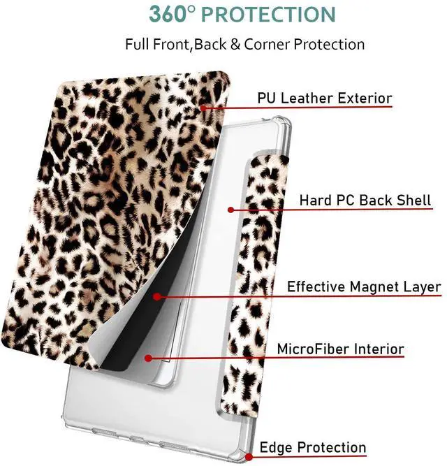 DuraSafe Cases for iPad Air 4/5/6 11 Gen [2020/2022/2024] A2588 A2316 MM6R3LL/A MM6T3LL/A MYHX2LL/A MYJ22LL/A Trifold Printed PC Lightweight Clear Cover - Leopard
