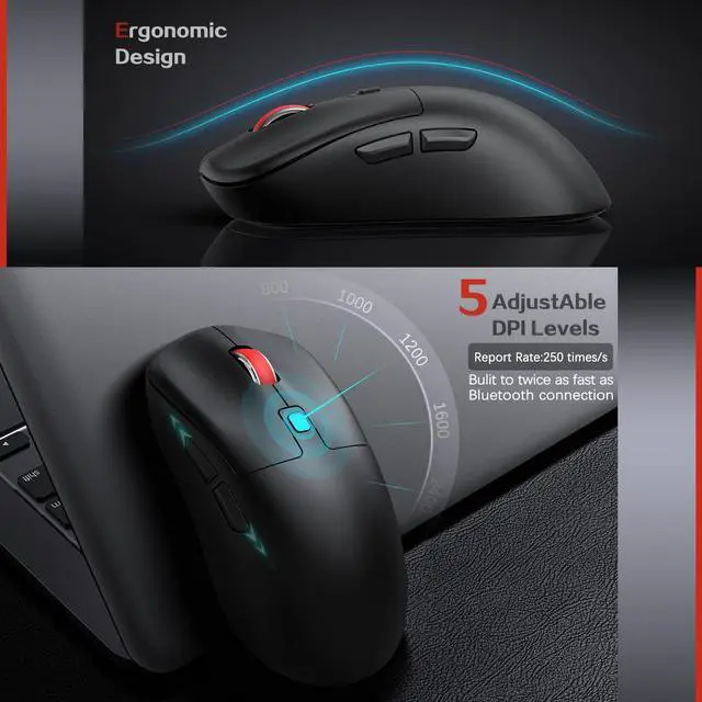 [(Wireless Mouse DPI 2400 in 5 Levels)] You can easily change the cursor sensitivity of this computer mouse mouse according to your activities: typically 1600 DPI for office
