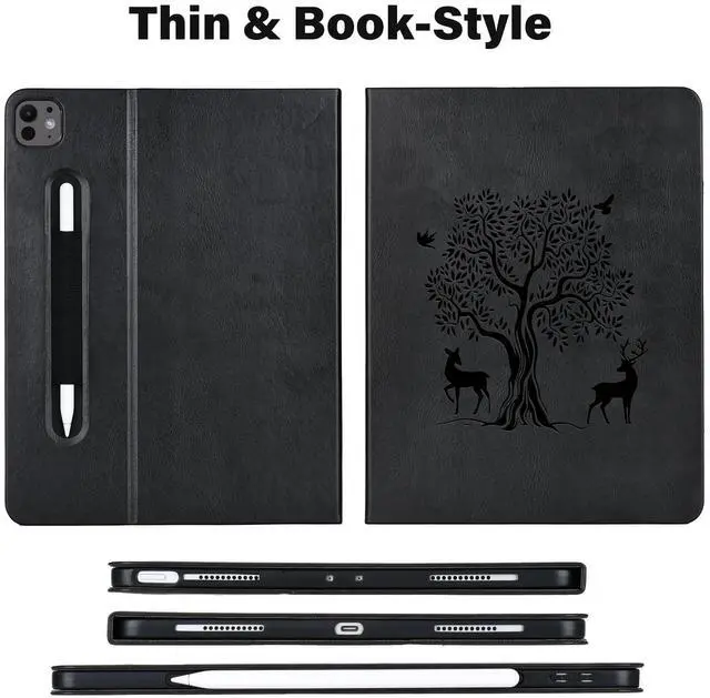 New Style Pencil Holder: The Leather 2024 iPad Pro Covers 13 inch Built-in Elastic Pencil Holder and Magnetic Closure, so it Doesn't Add Extra Width to the Cover, and Functional Without Being Bulky.