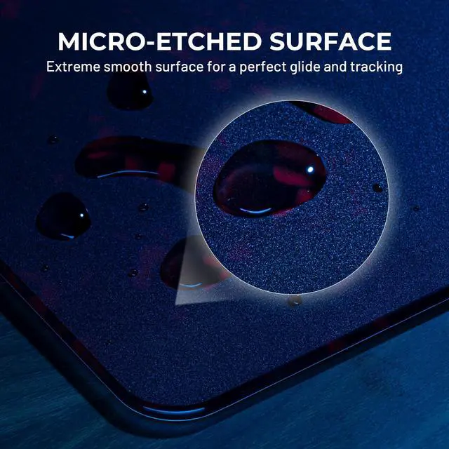 [(Micro-Etched Surface)] The front surface is micro-etched, that is tested to work seamlessly with optical sensors for high accuracy tracking. The mouse mat is smooth and delicate.Less friction makes operation faster and quieter. Mouse skates is included for quiet, fast, and effortless glide on glass mousepad.