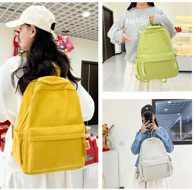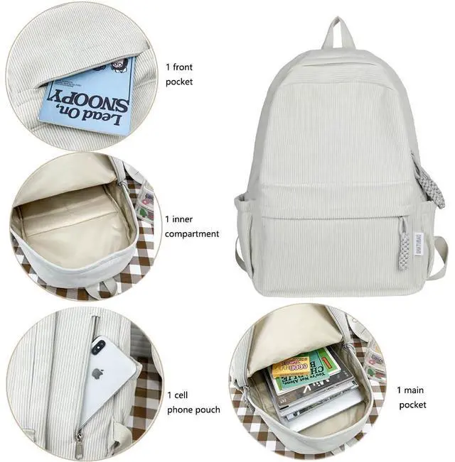 MATERIAL: Made of corduroy fabric with a smooth metal zipper, super lightweight yet strong. The entire fabric is coated to resist wear and tear. Durable and breathable, with cute accessories, this functional and aesthetic design is a great choice for a daily use backpack.