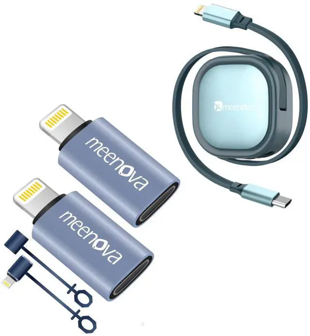 Meenova USB C Female to Lightning male Adapter (30W 2Pack) Retractable Lightning PD Fast Charging Cable