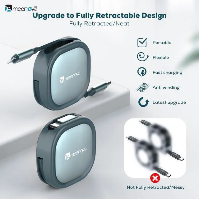 [(Fully Retractable Charger Cable)] : The other retractable cables can not be stored fully in the box. Our retractable cable can be completely stored in the box. It smoothly, ea