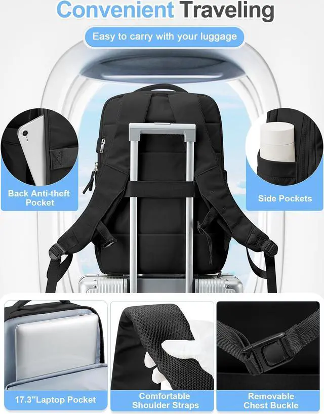 suratio Large Travel Backpack Carry On Flight Approved for Women Men Carry On Backpack for Airplanes Mochila De Viaje Suitcase Backpack for Travel Personal Item Backpack Black