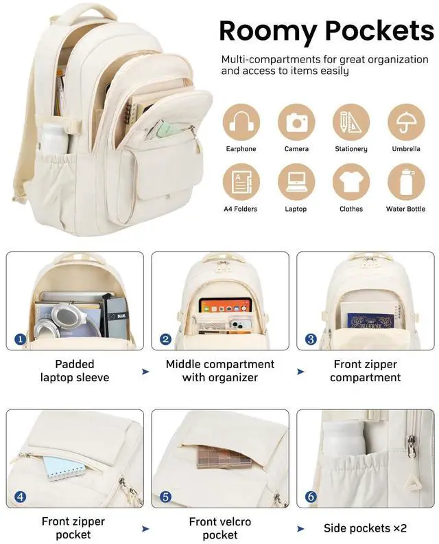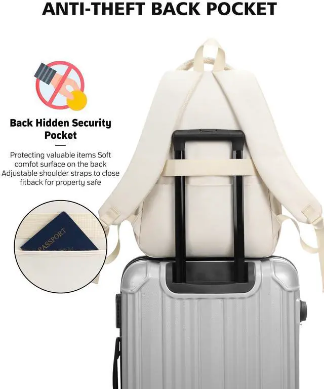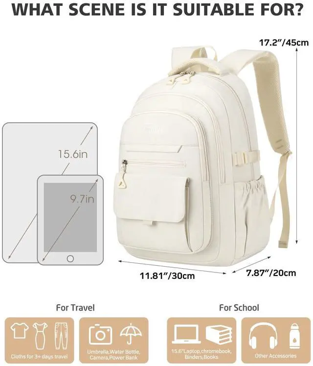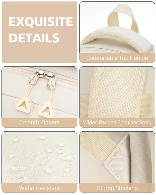VANKANY Cute Backpacks for Girls, Teens Aesthetic High School Laptop Backpack College Student Women Bookbag, Mochilas Escolares para Ninas, Beige