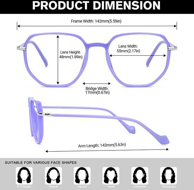 This geometric glasses is made with lightweight material, only 11.5 g, which will be more comportable when you wear. It's so great and can work well with all outfits.