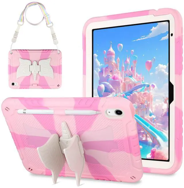 ATESSON for iPad 10th/11th Generation Case for kids Girls for iPad A16 Case 2025 11 inch with Pencil Holder Kickstand Shoulder Strap Heavy Duty Protective Cover for the iPad 10th Gen 10.9 '' /11th Pink