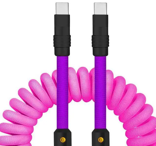 chubbycable Curly Chubby - 240W Coiled USB C Cable Spring Retractable Fast Charging Cable for Car Compatible with CarPlay, Android Auto, Pink+Purple, Type-C to Type-C, 2.29FT-3.6FT