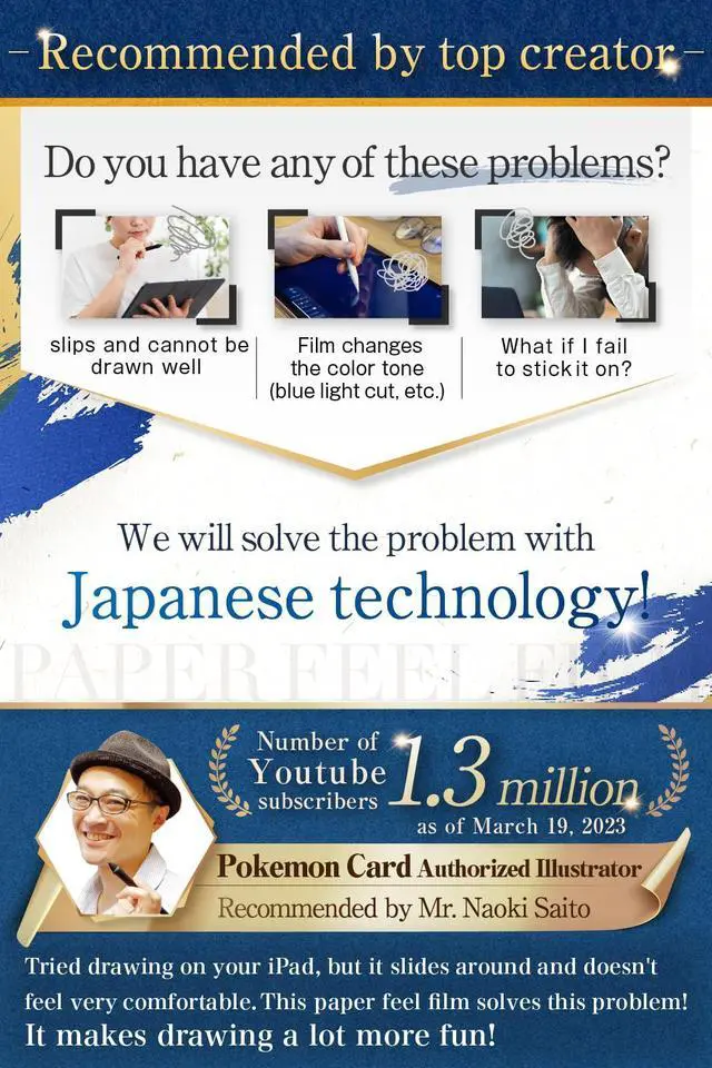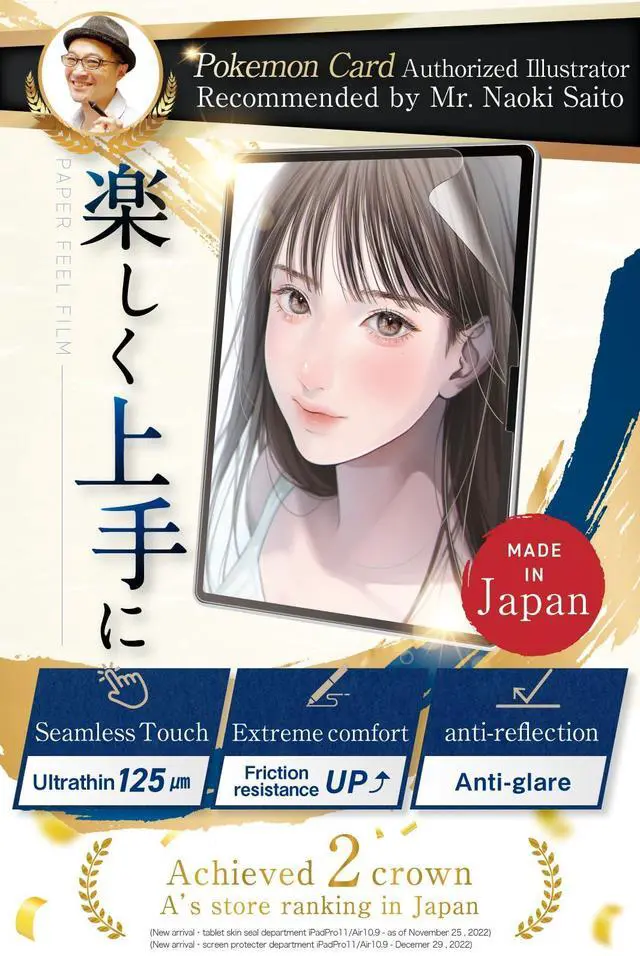 [(Ultimate Drawing Experience)] Enhancing the friction resistance of the film beyond that of fine paper, we aim to improve the drawing experience while pursuing the sensation of drawing on paper. It offers a paper feel drawing feel. Paperfeel screen protector