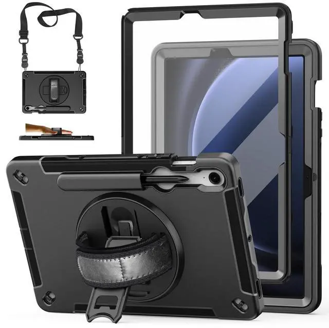Case for Galaxy Tab S10 FE &S9 FE 10.9"/S9 11 Inch: TPU Cover for Samstng Tablet S10 FE/ 2025/ S9 FE & S9 2023 5G with Screen Protector- Stand- Handle-Shoulder Strap-S-Pen Holder-Black