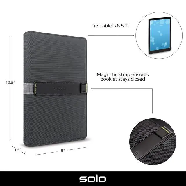 Tensioned clips designed to securely hold virtually all brands of 8.5 up to 11 inch tablets.