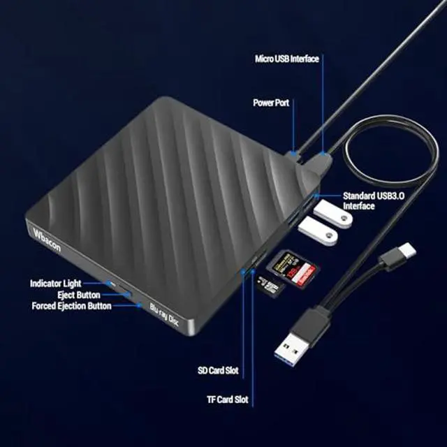 Plug & Play: This external Blu-ray drive is easy to use and requires no external drivers. It can be powered by a single USB cable, and its body features an eject button for convenient disc loading. Simply press the eject button and insert the disc, then plug the external Blu-ray burner into your computer's USB interface. You can start enjoying your favorite Blu-ray content right away without any complicated installation processes.