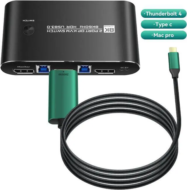 • Displayport kvm Switch 1 Monitors 2 Computers 165hz : KVM Switch Displayport 2 Computers 1 Monitor sharing one set of keyboard & mouse, 1 DP2.0 or DP 1.4 monitor