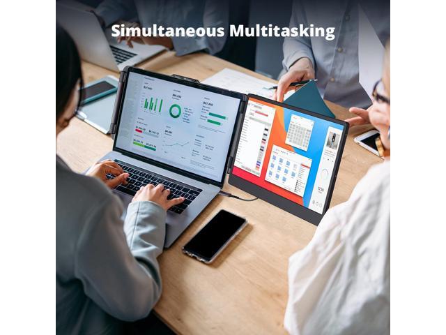 [(Wide Compatibility)] 14'' laptop Screen extender portable compatible with Windows, macOS (including M1/M2/M3), Chrome, Android, Switch and Linux, adapts to different operating systems. Its flexibility and compatibility make it the go-to choice for users seeking a reliable second trscreen for laptop portable use and it work with a wide range of laptops (13-17 inches diagonal).