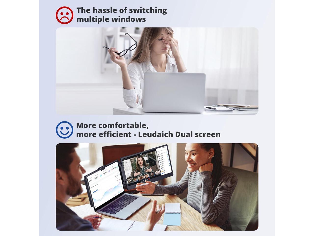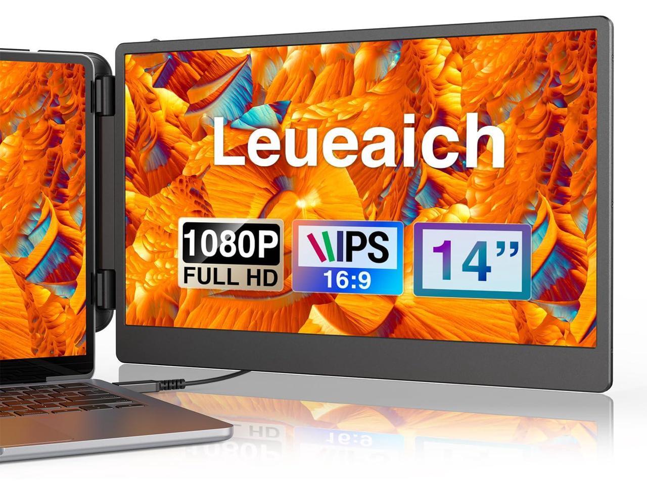Leudaich 14'' Laptop Monitor Extender for Dual Monitor Display, FHD IPS Portable Monitor for 13"-16" Laptops, HDMI/USB-A/Type-C Plug-Play Dual-Screen for Windows, Chrome, Mac and Switch