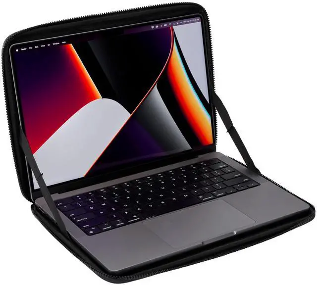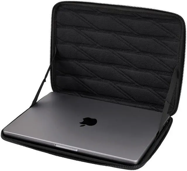 A sleek, molded laptop sleeve for 14 inch MacBook Pro, 13 inch MacBook Pro, 13 inch MacBook Air or laptops up to 12.31 x 8.71 inches. The rigid exterior and edge protection is designed to safeguard your device, while the clamshell design allows you to work directly out of the case.