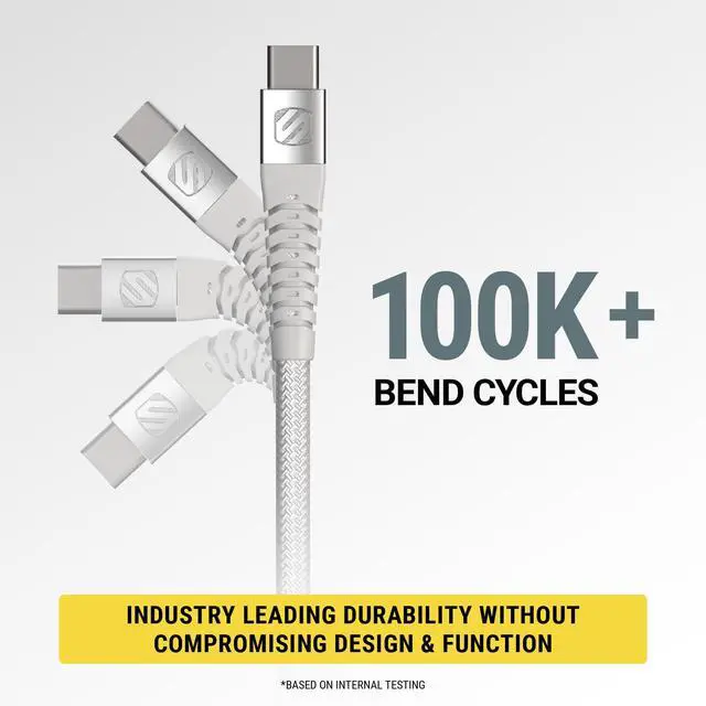 The Scosche HDi3B4WT-SP Strikeline Heavy-Duty Premium USB-A to MFi Certified Fast Charging Cable offers the ultimate convenience and efficiency. The Scosche USB-A to lightning braided charger cable is your perfect on-the-go charging solution for all your compatible Apple Lightning devices. Whether you're charging your iPhone 15, AirPods or iPad Pro, this versatile charger has got you covered. Its power delivery ensures rapid charging, so you can get back to what matters most, faster than ever. This charging cable is designed for car and home to keep up with the demands of your busy lifestyle.