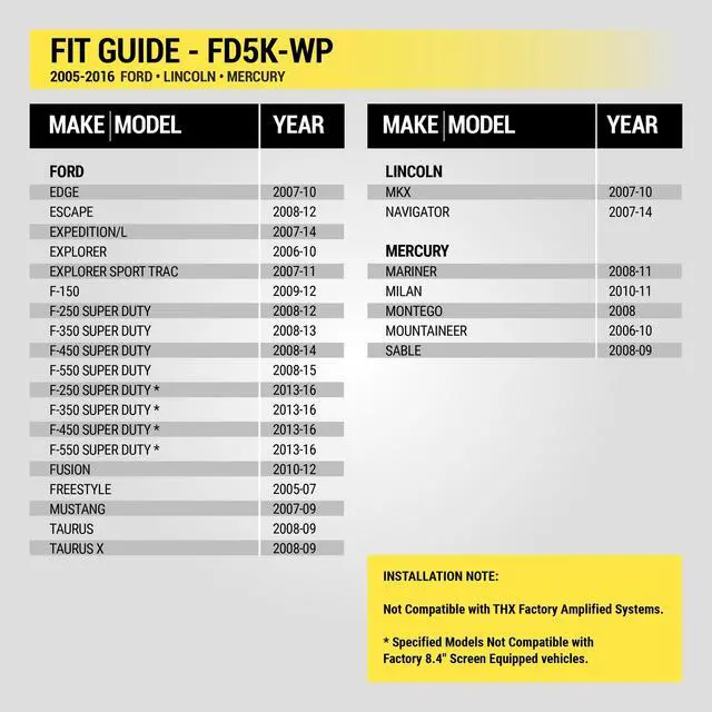 With its OEM quality construction, it withstands the test of time. The kit includes all the necessary hardware for a straightforward radio installation process, making it a breeze for both DIY enthusiasts and professional installers. Say goodbye to compatibility issues and hello to a hassle free car stereo installation experience. This radio interface complements your new radio by retaining all of the factory safety and warning chimes. The durable materials used ensure that your radio interface performs through all your journeys. Get ready to enjoy a flawless stereo experience with the FD5K-WP, your ultimate partner for a new radio installation.