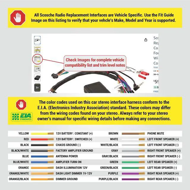 Upgrade your audio system with the Scosche FD5K-WP, the perfect radio interface for Select 2005-2016 Ford, Lincoln & Mercury vehicles. This radio interface allows you to connect an aftermarket stereo to your factory radio harnesses retaining the use of your steering wheel controls, to safely operate your radio while driving. If you're looking to enhance your stereo experience with Bluetooth, CarPlay or Android Auto, this stereo interface harness is your go-to solution for a professional quality installation. The FD5K-WP radio interface is crafted with precision to ensure a snug and secure fit for your radio wiring.