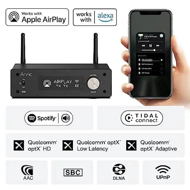 Arylic H50 Hi-Fi Multiroom WiFi Amplifier with Bluetooth aptX HD, HDMI ARC, Airplay & Spotify Streaming for Wireless Home Music. Support 192Khz/24bits HD Music Transmission & Reception. 50W*2 Amplifier