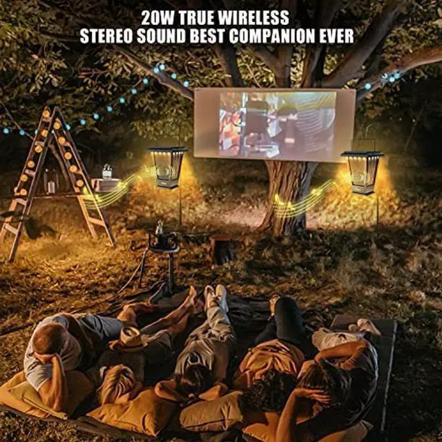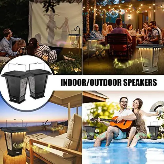 pohopa Bluetooth Speakers Waterproof, Solar Powered 2 Packs True Wireless Stereo Sound 20W Speakers Dual Pairing Lantern Indoor Outdoor Speakers with 20 Piece LED Lights, Richer Bass, Black