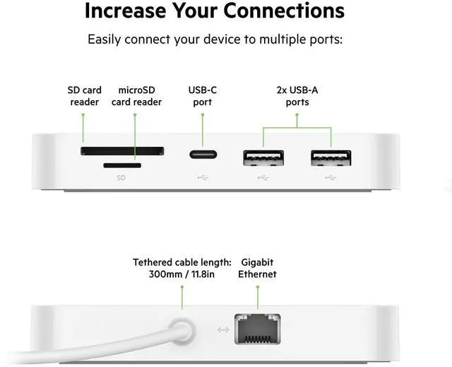 It connects through its tethered right-angle USB-C cable. The mount allows the USB Hub to be secured to the back of an iMac, PC, computer stand or monitor base, with its removable, non-damaging 3M Command Strip mount with a quick-release button for on-the-go use. For 35 years, Belkin has been creating products that simplify your life and empower you to fully leverage technology. The Belkin Difference ensures that every product is thoughtfully engineered, made of the highest-quality materials, and thoroughly tested before making its way to you. Belkins rigorous testing and end-to-end control of the manufacturing process allow us to ensure the highest standards are met.
