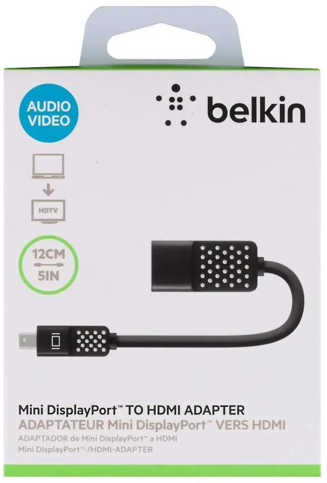 The Mini DisplayPort to HDMI Adapter lets you stream high-quality A/V content from your laptop or tablet to your HDTV and HDMI monitors. Use it in conjunction with an HDMI cable (sold separately) to watch movies, share photos, or switch to expand your workstation with a mirrored desktop. This Mini DisplayPort adapter offers the ideal digital display interface standard for HD performance. This Mini DisplayPort to HDMI adapter allows you to enjoy 4K video (3840 x 2160) at a 30Hz frame rate. Like traditional HDMI cables, this Mini DisplayPort to HDMI cable also supports high-definition audio for an all-in-one A/V solution.