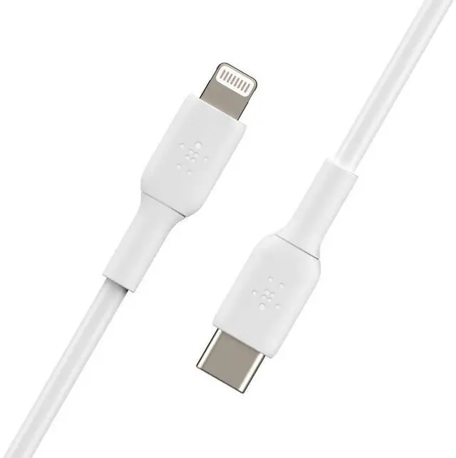 The Belkin BoostCharge USB C to Lightning Cable has been rigorously tested in our laboratory and can easily withstand over 8, 000 bends, an 8x increase from your standard cable. This cable is 3.3 ft/1M long, the perfect length for keeping all of your devices charged and close by. This fast charging USB C to Lightning Cable comes in a variety of sizes and colors to perfectly fit your needs. Optimized to charge PD-enabled devices at high speeds. Compatible with all Lightning devices, including the Apple iPhone 14, iPhone 13, iPhone 12, iPad, Apple Airpods, Airpods Pro, and more