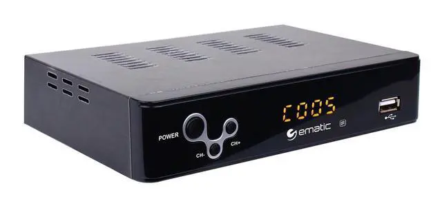 The Ematic AT103B Digital Converter box allows your TV without a digital tuner to receive new digital broadcasts. Features an electronic program guide, parental controls, recording capabilities, and a USB connection for multimedia playback. Full function remote control included Converts digital broadcasts to your analog TV Cable loop through Electronic program guide and program information Favorite channel list Parental control function Auto tuning Auto, 16:9 pillar box, 16:9 pan & scan, 4:3 letter box, 4:3 pan & scan, 4:3 full, 16:9 wide screen Closed captioning EAS (Emergency Alert System) Full function remote control Real-time recording & appointed recording 1080P output; CVBS output Timing startup & shutdown USB multimedia player compatible with MP3, AAC, AVI, MPG, DAT, VOB, MKV, MJPEG, JPEG, BMP, PNG