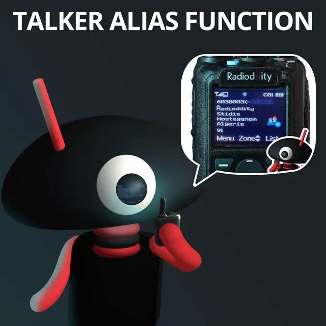 Talker Alias Function: This function, also known as In-band Caller Alias, will allow your pre-set text like your name or callsign displayed on all radios screen receiving the transmission, which is useful for radios which are shared between two or more users.