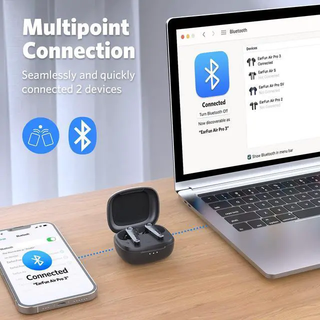 [Reduces Noise Up to 43dB] EarFun Air Pro 3 noise cancelling earbuds feature unique Hybrid ANC technology-QuietSmart 2.0, environmental noises are eliminated up to 43dB. You can choose your noise-canceling mode to adapt to your environment, keeping you immersed in any place.