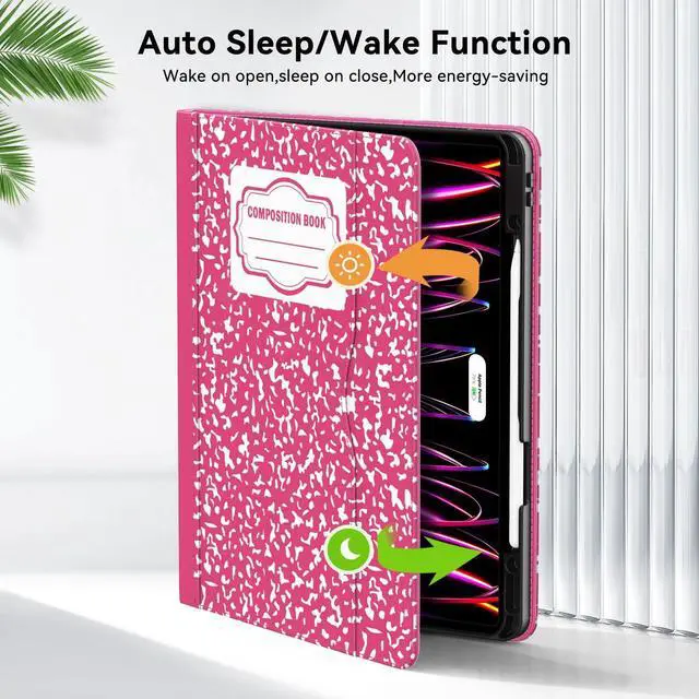 Zonefoker for New iPad Pro 12.9 inch Case 6th/5th/4th/3rd Generation 2022/2021/2020/2018, 12.9 ipad Pro Leather Protective Cover 6/5/4/3 Gen with Pencil Holder, Auto Wake/Sleep, Composition Book Pink