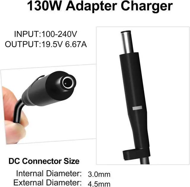 130W 19.5V 6.67A DA130PM130 Power Supply AC Laptop Charger Fit for Dell XPS 15 7590 9530 9550 9560 9570 Inspiron 7347 7348 7459 Precision M3800 M2800 5510 5520 5530 5540 HA130PM130 0V363H 06TTY6
